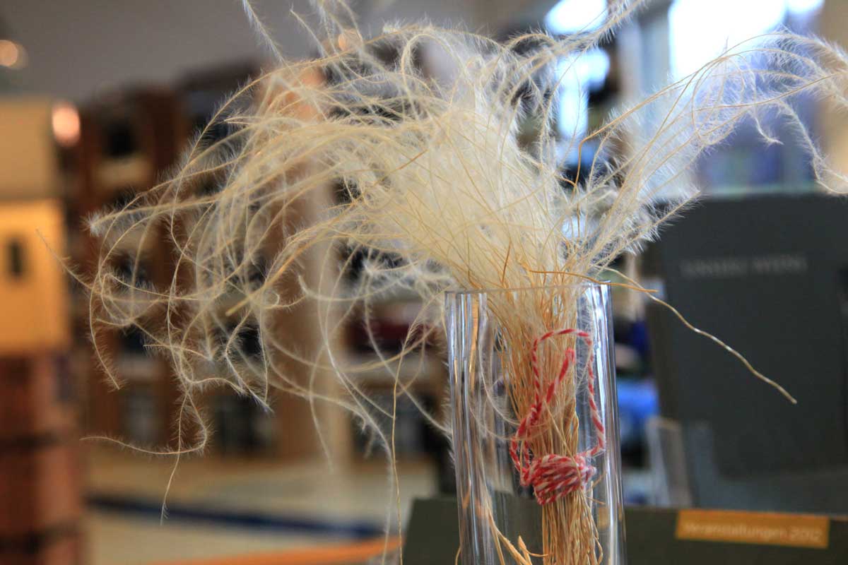 l.o.: Ein Büscherl Steinfeder im Kostraum der Domäne