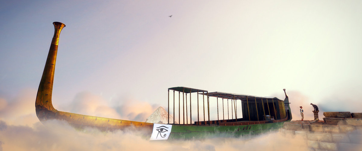Die Ägypter, so heißt es, haben 5000 Jahre Erfahrung mit dem Tourismus. Nahe der Hauptstadt Kairo steht schließlich die berühmteste der Pyramiden und damit eine Attraktion, die schon in der Antike die Menschen massenhaft angezogen hat. Abgesehen von der beeindruckenden äußeren Erscheinung lockt eine Erkundung des Inneren dieser mehr als pompösen Grablege des Pharaos Chufu, besser bekannt als Cheops. Waren es zuerst die Grabräuber, die trotz raffinierter Sperranlagen nach verborgenen Schätzen suchten, kamen später die Forscher, um dieser extrem komplexen Architektur die darin enthaltenen Geheimnisse zu entreißen. Wer hat sich nicht schon einmal gewünscht, mit einem dieser Ägyptologen in diesen Berg von Steinen hinein zu kraxeln, über die verborgene Galerie bis zum Sarkophag des Königs vorzudringen, beim Einbalsamieren zuschauen und mit den Priestern einer Begräbniszeremonie beizuwohnen, um anschließend mit der Barke ins Totenreich zu gleiten und zu guter Letzt bei Sonnenaufgang von ganz oben den endlos weiten Rundblick über Stadt und Wüste zu genießen?! Dank einer immersiven Reise ins alte Ägypten gibt es nun die wahrhaft wundersame Möglichkeit, sich im Zuge einer nächtlichen Führung mit der charmanten Ägyptologin Mona, ein Anagram des Gottes Amon, und der katzengestaltigen Göttin Bastet in die Zeit der Pharaonen versetzen zu lassen.