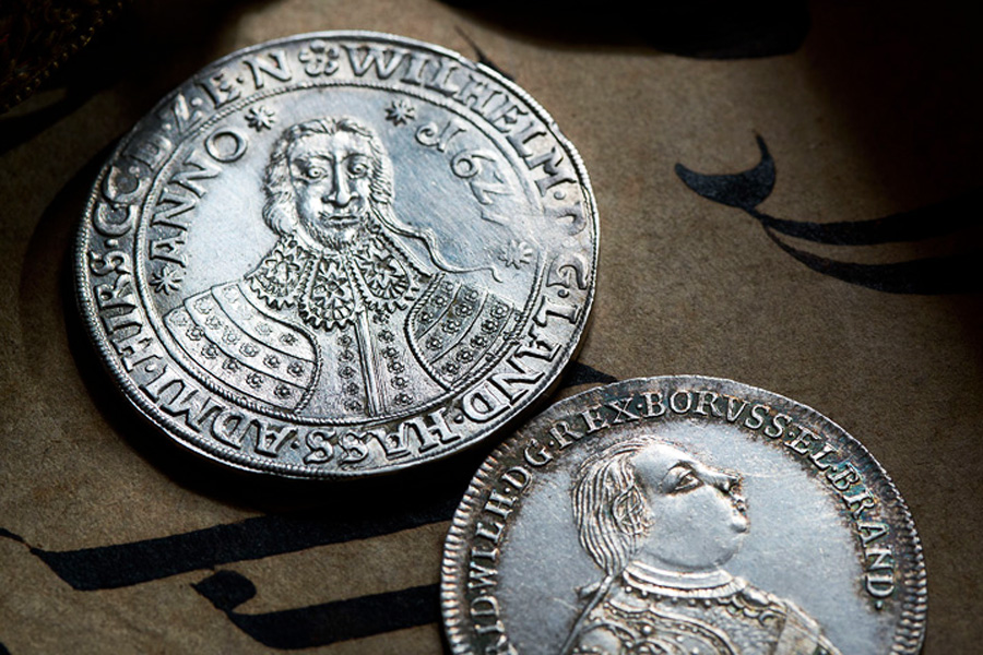 Für die Herrschenden war diese frühe Form der PR nicht nur äußerst einträglich, sondern auch ungemein wirksam. Sie ließen ihr Porträt auf die Münzen ihres Reiches prägen und waren so ihren Untertanen täglich sichtbar. Es sind wenige Quadratzentimeter, die dafür zur Verfügung standen. Aber die Künstler waren imstande, auf diese winzige Fläche viel mehr als nur das Konterfei ihrer Herrschaft zu gravieren. Sie schufen aussagekräftige Bilder ihrer Zeit. Manche der Prägungen sind wahre Modejournale. Abenteuerliche Frisuren, auffallende Kopfbedeckungen, ausladende Halskrausen und Bärte, sogar die unnatürlich hohe Schädelform, die den Adel eines Stammes der Hunnen bis heute dokumentiert. Damit nicht genug der Feinheit! So wurden beispielsweise in die winzigen Helme noch Begebenheiten aus dem Heldenleben des Dargestellten eingearbeitet oder die angedeuteten Edelsteine in der Krone des Kaisers bis zur Struktur des Spitzentuchs einer Herzogin.