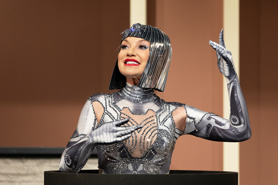 Eine elektronische Kommandozentrale dirigiert den Haushalt von Adrian. Der musisch begabte Junggeselle hat damit jedoch seine Probleme. Befehle müssen exakt formuliert sein, andernfalls gibt es 37 Stück Zucker im Espresso, aus der Dusche kommt 75 Grad heißes Wasser und der vorlaute Kühlschrank setzt den Mechanismus zur Selbstzerstörung in gang. Als designierter Erbe der viele Millionen schweren Firma Smart.Home.Living ist er jedoch das hilflose Opfer seiner energischen Mutter. Sie will Enkelkinder, um das Aussterben der uralten Familie derer von Schönhausen zu verhindern. Die von ihr vorgeschlagene Kandidatin stellt sich jedoch als zwar stinkreiche, aber recht einfach gestrickte Tussi heraus. Für den geplagten Sohn ist erst eine Lösung in Sicht, als aus dem tiefen Keller der IT-Forscher und Entwickler Prof. Albert Weinstein auftaucht. Er hat einen Androiden entwickelt, der bis ins kleinste Detail wie eine attraktive Frau aussieht und nach entsprechender Programmierung und Lernphase auch so spricht und handelt. Ihr Name ist Roberta und könnte der Mutter als Schwiegertochter untergejubelt werden. Der erwartete Kindersegen ist in diesem Moment vom Tisch, ließe sich aber wohl auf dem gleichen technischen Weg herstellen. Waren es mit Frankenstein und dem Golem früher Männer, sind es interessanterweise heutzutage künstliche Frauen, die in der Theaterszene die Herrschaft angetreten haben. Nach „Die Puppe“ von Miro Gavran und „Die Frau, die Man(n) abschalten kann“, erdacht vom KI-Experten Dr. Sven Eric Panitz, hat nun unter dem Titel „Die (fast) perfekte Braut“ die dritte humanoide Dame die Bühnen des Theater Center Forum betreten. Cordula Polster und Nici Neiss haben eine im Grund schwarze Komödie um die Konfrontation zwischen Menschen aus Fleisch und Blut und einer dominanten künstlichen Intelligenz geschaffen. Umgesetzt wurde das Stück erstmals in Österreich von der Neuen Bühne Wien unter Marcus Strahl. Regie geführt hat die Autorin Nici Neiss selbst und, da sie eine begnadete Komödiantin ist, gleich auch den überwiegend lustigen Part von Olga, einer zugewanderten Haushälterin, übernommen. Anita Kolbert ist die resolute Mutter Gertrude von Schönhausen, der für die eigentliche Begabung ihres Sohnes jegliches Verständnis fehlt.