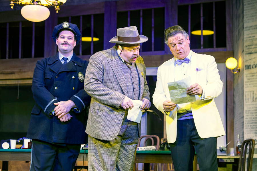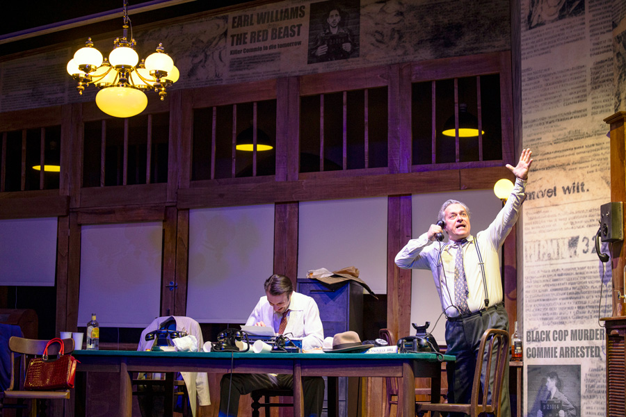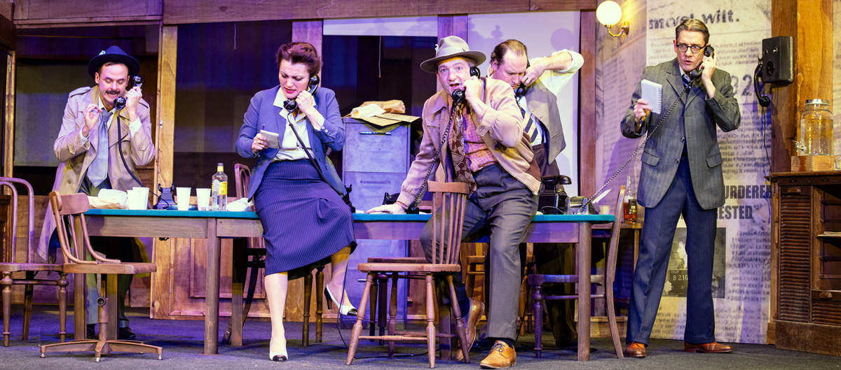Wäre nicht das von Marcus Ganser geschaffene Pressezimmer im Strafgericht von Chicago von seiner Ausstattung her in den 1920er-Jahren angesiedelt, könnte sich die turbulente Geschichte um einen Kandidaten für den elektrischen Stuhl durchaus auch in der Gegenwart abspielen. Trotz unübersehbarer tragischer Übereinstimmungen hat der Prinzipal des Theaters zum Fürchten der von Ben Hecht und Charles MacArthur erdachten Satire mit dem Titel „The Front Page“ das Komödiantische und damit das Lachen bewahrt. Bruno Max konnte dazu für seine Inszenierung auf ein Ensemble zurückgreifen, das von einem Haufen sensationshungriger Journalisten über seltsame Amtspersonen bis zu den „ganz gewöhnlichen Menschen“ jede einzelne Rolle ihrem jeweiligen Typ entsprechend zu verkörpern imstande ist. Erlebt man das Treiben all dieser darin verwickelten Personen unmittelbar live, vergisst man gerne, dass „Extrablatt“ bereits vom großen Billy Wilder in Starbesetzung verfilmt und zu einem Reißer in den Kinos der 1970er wurde.