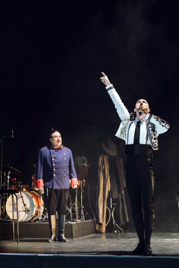 „Killing Carmen“ ist eigentlich ein verspäteter Titel, denn sie ist ja schon lange tot. Wenn allerdings Katia Ledoux in einer der Rückblenden auftritt, ist sie sehr lebendig und zeigt temperamentvoll, dass sie die Idealbesetzung für diese Partie ist. Der erste, der auf ihre Verführungskünste hereinfällt, ist Sergeant Moralès. Florian Carove ist der verhinderte Frauenheld, der die meisten Lacher für sich verbuchen kann, wenn er beispielsweise Carmen unbeholfen den Hof macht und sich bei der erfrischend pragmatisch um José kämpfenden Micaëla (Julia Edtmeier auch als umtriebiger Schmuggler Dancaïro) einen Korb holt. Am wenigsten gealtert ist der Held der Oper.